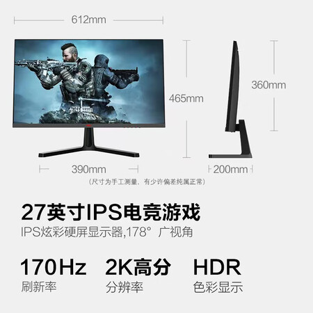 HKC 27英寸 2K高清170Hz IPS技术 HDR广色域 1Ms快速响应 液晶电脑显示器 电竞游戏144Hz 窄边框 SG27Qplus到手价格1198.0元。