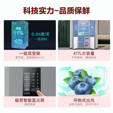 海尔(Haier)冰箱477升十字对开门四开门风冷无霜一级能效三档变温黑金净化家用大容量电冰箱BCD-477WGHTDEDSP目前活动价:3299.0元!